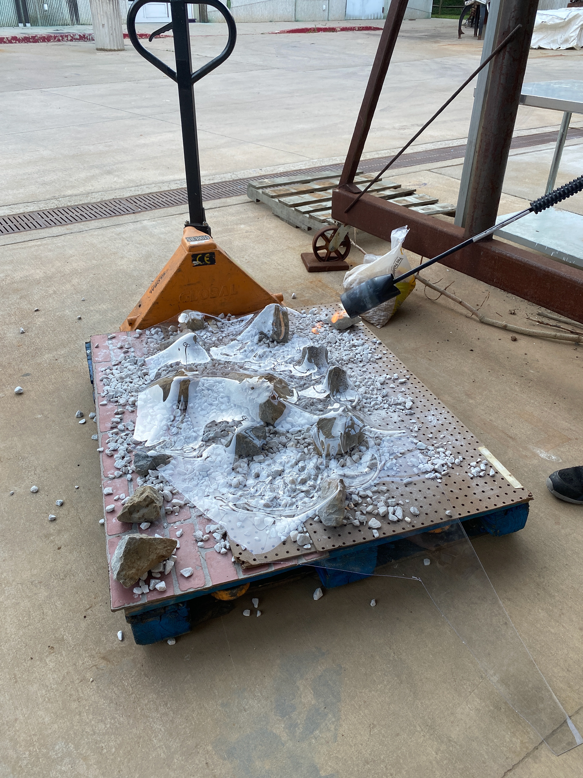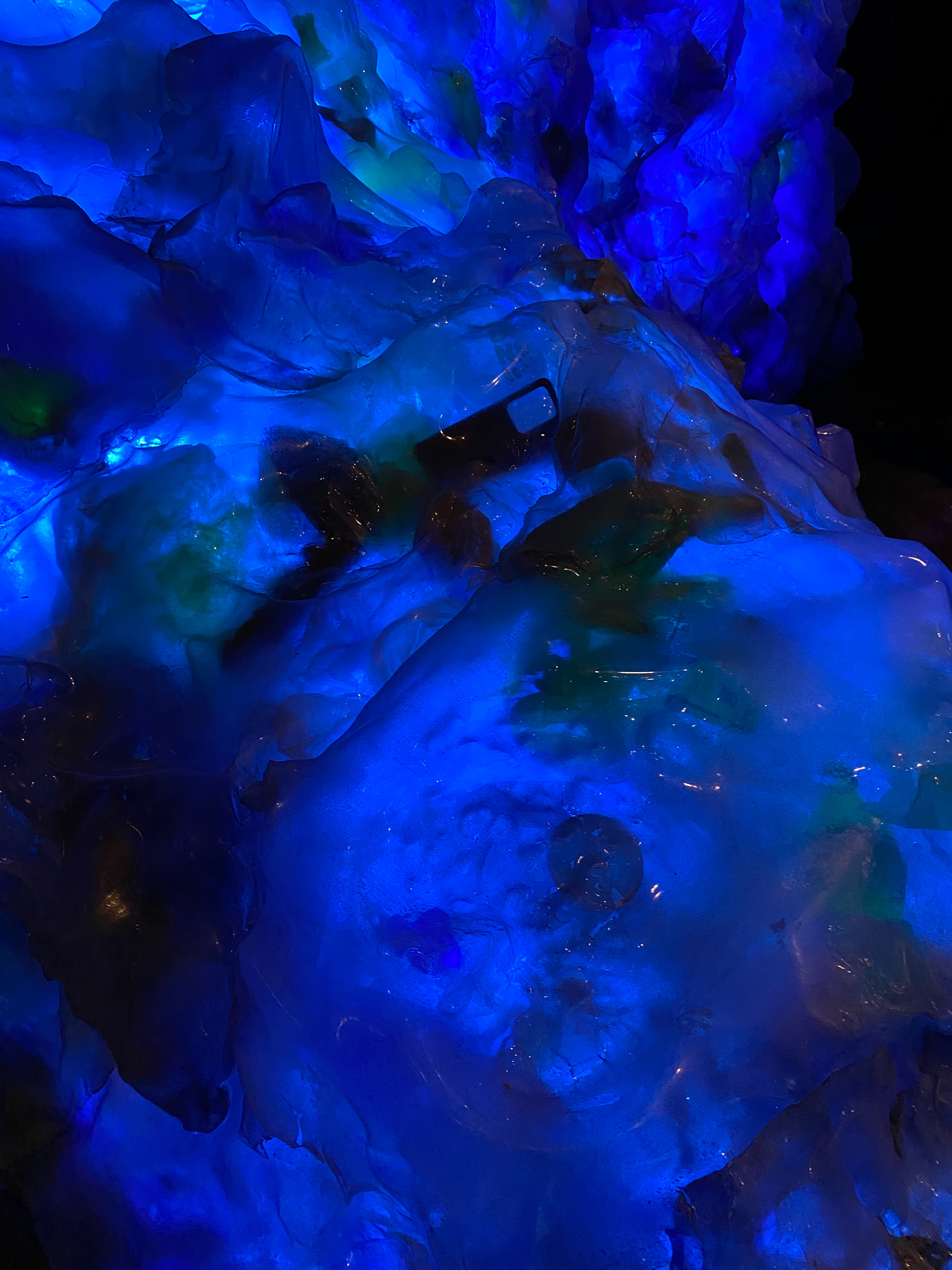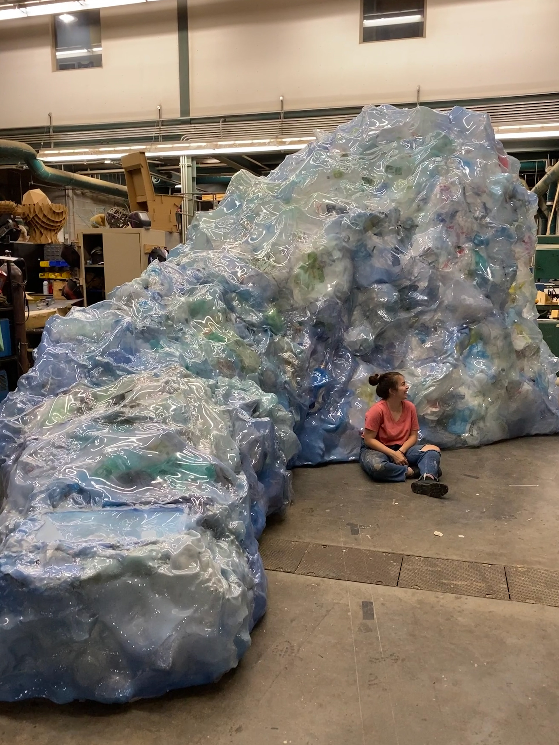 Iceberg fabricated out of recycled materials for World Premiere of USHUAIA BLUE by Caridad Svich | Scenic Design: Jesse Dreikosen